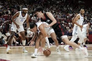 20岁的年轻小将、开拓者16号秀、中国中锋杨瀚森本场比赛表现从容不迫,他出战23分35秒,7投3中,三分3中1,罚球4中3,得到10分4篮板5助攻1抢断3盖帽,出现3失误和6犯规(夏联10犯离场)无伤大雅,正负值+19。
