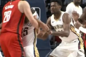保护队友!老六想往前冲被申京直接架住腋下往后一扔再摔一跤