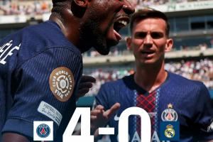 体育资讯07月10日讯 世俱杯半决赛,巴黎4-0横扫皇马,挺进决赛。巴黎各项赛事最近5场淘汰赛,惊人地18-0对手。