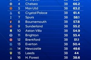 11 布莱顿 —— 53.4